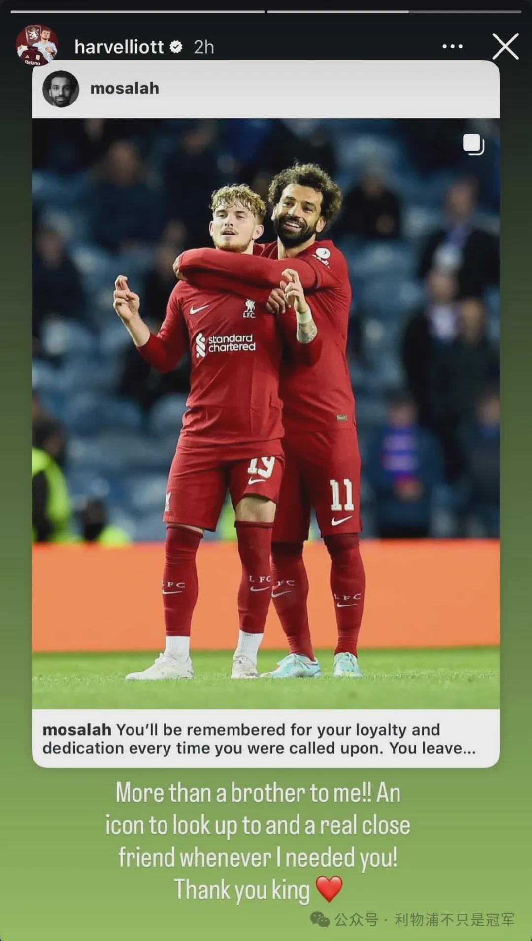 “每次被召唤时,你的忠诚和奉献都会被铭记,”萨拉赫在社交媒体上发文写道,“你以冠军的身份离开,我毫不怀疑你会在新俱乐部成就大事。他们拥有你是幸运的。”