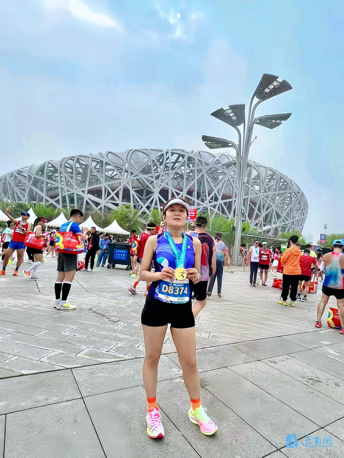 张超参加2018徐州马拉松2018年,为了减肥,张超下定决心开启跑步计划,没想到一跑就是七年。同年,她首次站上马拉松赛场,参加了徐州本地的马拉松比赛,以2小时20分钟的成绩完成了人生中的第一场半程马拉松。谈及第一次参赛的感受,张超的语气里依旧藏着当年的激动:“现场太热闹了,一路上都是加油呐喊的观众,赛道两旁的风景也特别好,跑完之后虽然很累,但心里满是成就感,当时就想着,以后还要再跑更多马拉松!”